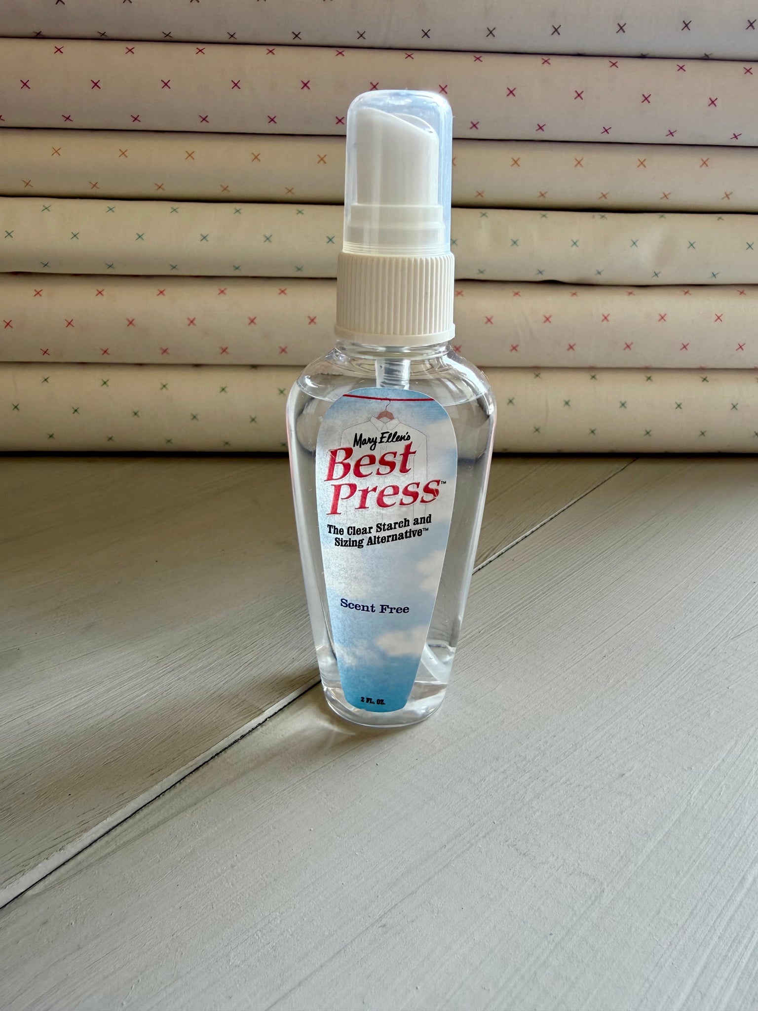 Best Press Starch and Sizing Alternative has been our best seller for years! With Best Press, there's no flaking, clogging, or white residue on dark fabrics! And more! A special stain shield protects fabrics, and the product helps resist wrinkles. Best of all, it's more effective than any starch you've ever used. Try Best Press today - you will never go back to ironing with ordinary spray starch!