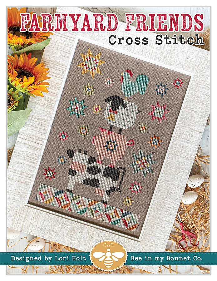 The Farmyard Friends Cross Stitch Pattern, also by Lori Holt of Bee in my Bonnet, features four animal friends playfully balancing on one another. Their playful antics have become the talk of the barnyard. Perhaps they are trying to reach for the stars.