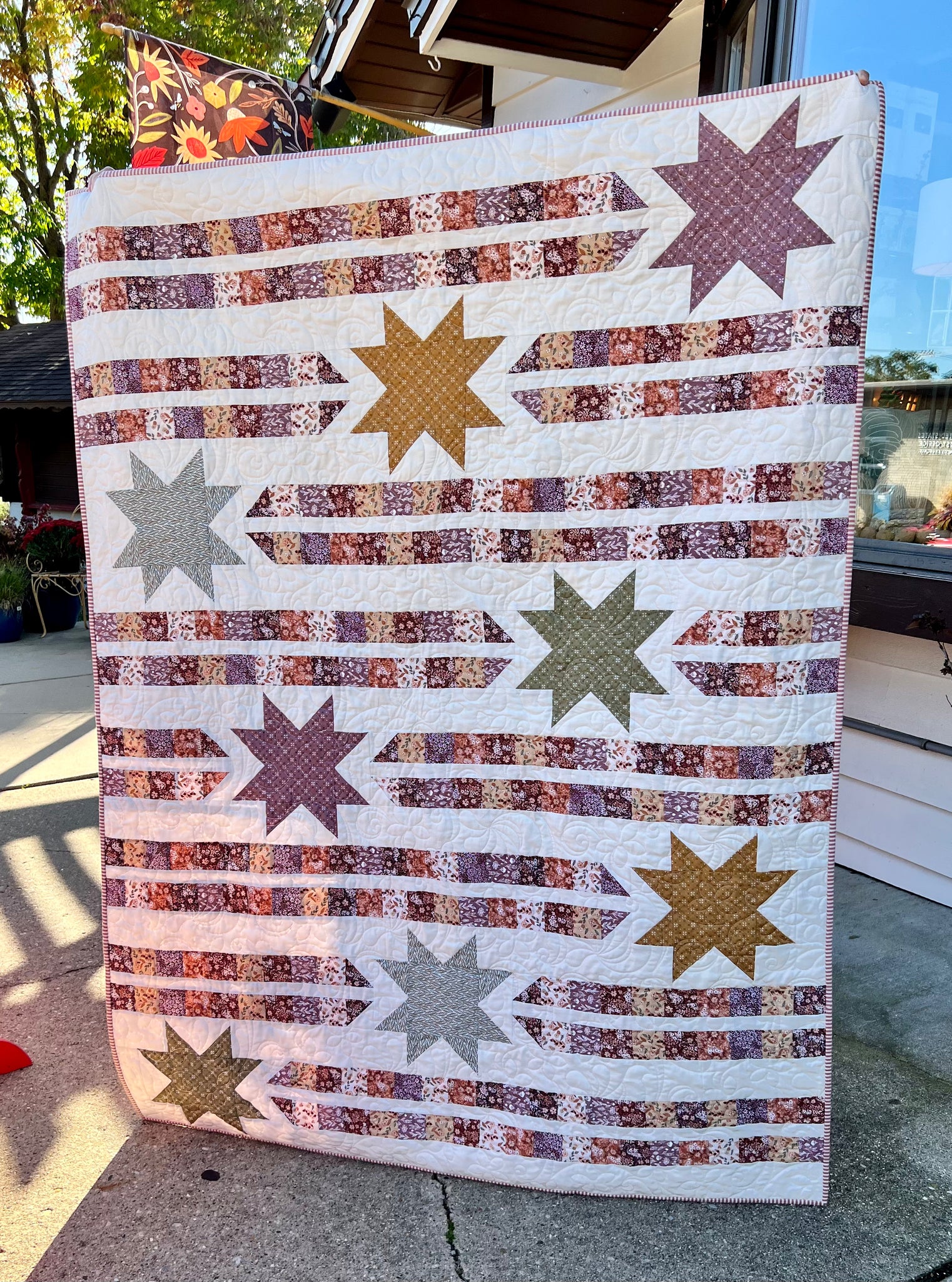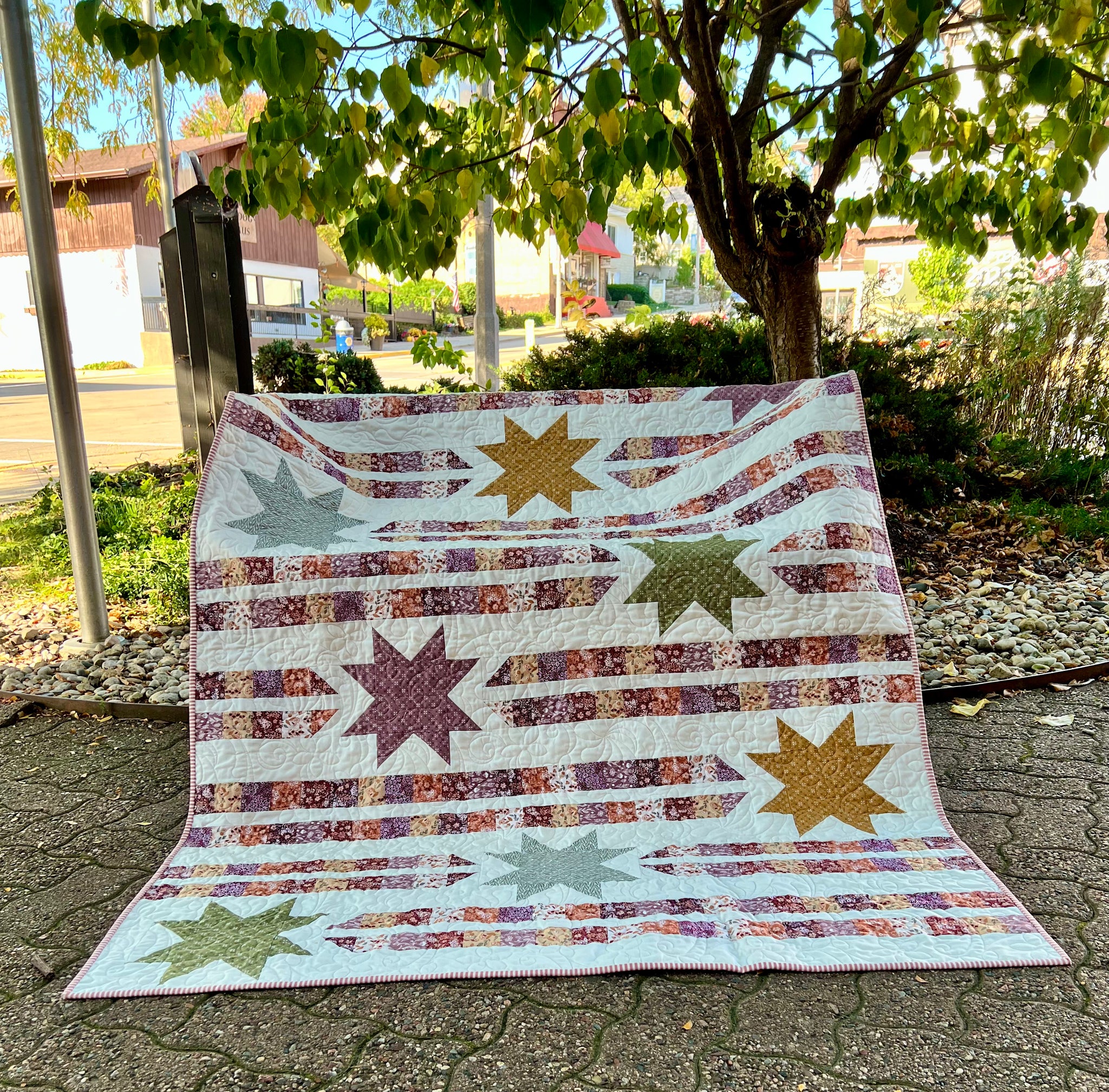 Our box theme for this month includes the Evening on the Prairie fabric collection by Modern Prairie. Our exclusive project includes pattern, fabric usage guide and fabric for throw top and binding. Backing available separately. Project finishes at approximately 50 x 67. You will need 3 1/3 yards for backing. Our Happy Little Stitch Box also includes other AMAZING goodies for your happy little shipment!